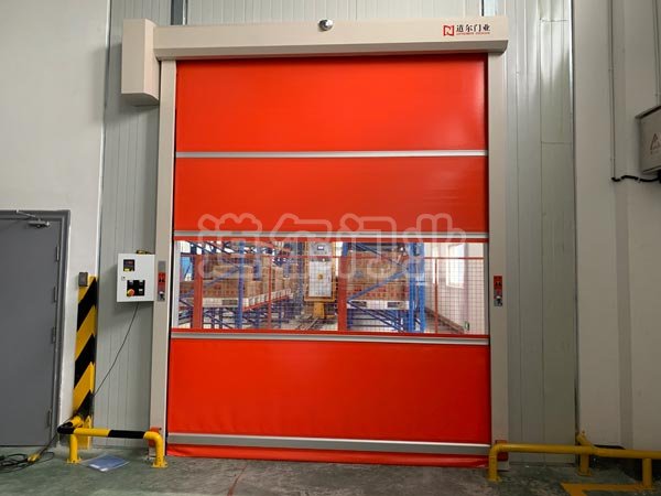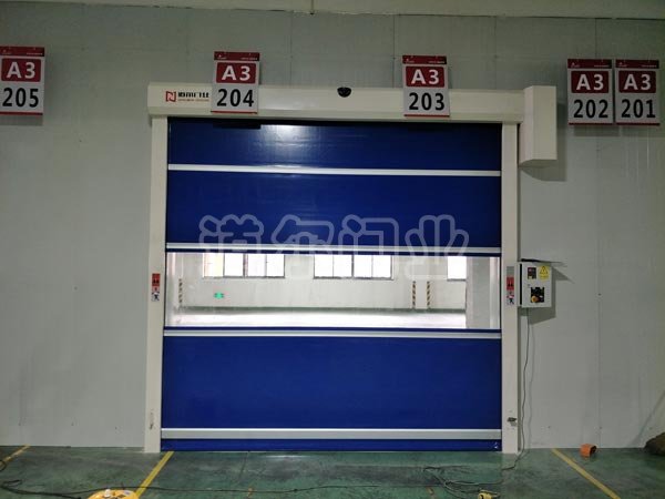 快速门又称为快速卷帘门、高速门、高速卷帘门,通过变频器控制、编码器定位、门帘(PVC材质)快速升降,专为物料的快速流动(以缩短进出时间)而设计的。快速门是以多关节活动的软片串联在一起,在固定的滑道内,以门上方卷轴为中心转动上下的门,安全配置和密封性能尤为重要。