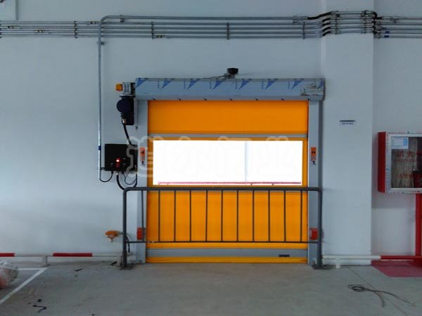 快速门又称为快速卷帘门、高速门、高速卷帘门,通过变频器控制、编码器定位、门帘(PVC材质)快速升降,专为物料的快速流动(以缩短进出时间)而设计的。快速门是以多关节活动的软片串联在一起,在固定的滑道内,以门上方卷轴为中心转动上下的门,安全配置和密封性能尤为重要。